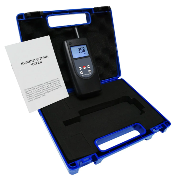 Perangkat ini menggunakan sensor kelembapan tipe kapasitor dan sensor temperatur presisi tinggi sehingga mampu memberikan hasil pengukuran cepat dengan tingkat akurasi yang baik. Nilai pengukuran ditampilkan secara digital pada layar LCD yang mudah dibaca, sehingga pengguna dapat langsung mengetahui kondisi lingkungan tanpa perhitungan tambahan.